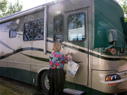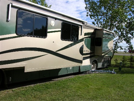 We drove to Winnipeg, MB on the 27th and decided to spend three nights there hoping we were out of the Prairies. We drove 145 miles and checked into the huge Traveler's RV Resort, the only campground in Winnipeg. Here is our campsite and another green 2004 Dutch Star in the campground, though with the other paint scheme: