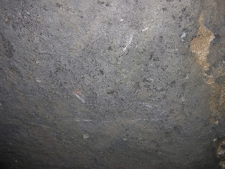 A ceiling picture with fossils and a close-up of the same: