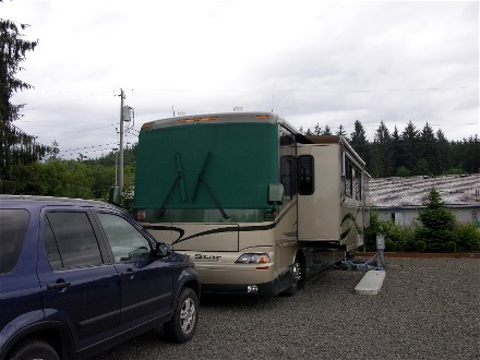 We had realized that even though we had taken US101 on the Olympic Peninsula we had not stopped and seen the sights. Bill's sister used to live in the Northwest corner so his family would always drive right through. We would base camp at Port Angeles and it was too far for most day trips. We decided to stay in Forks, WA, the rain capital of the state. The drive on the 7th from Copalis Beach was 99 miles and we landed at Forks 101 RV Park. Here is our campsite, and yes it had rained: