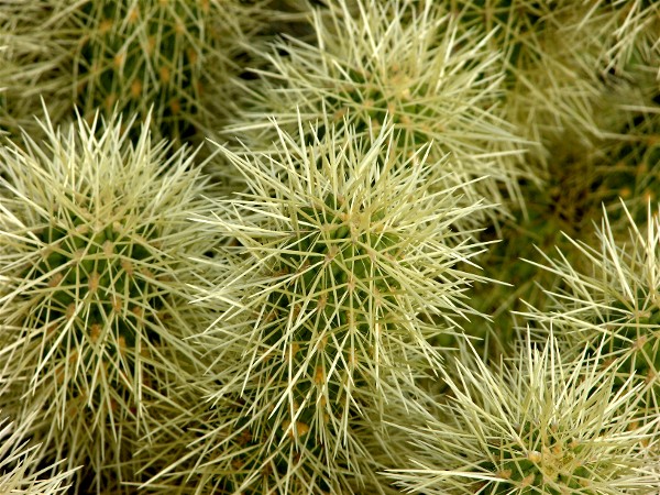 A close up of Teddy Bear cholla, which are also called "Jumping Cholla" since the needles jump out and stick to you: