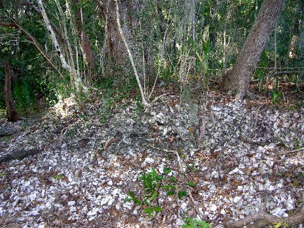 The local Indians harvested the oysters for centuries and made piles of shells, called middens, now trees grow on them: