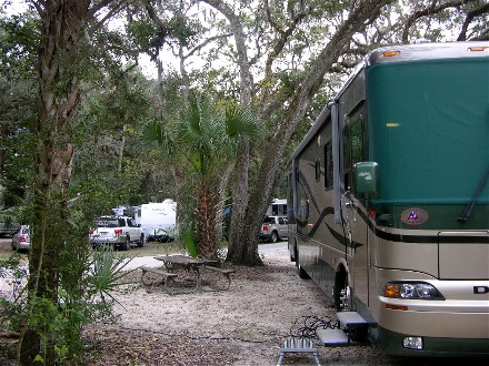 Hanna Park has lots of live oak trees and they cause the main noise, the sound of acorns hitting your roof. At one end of the park, which has a lot of day use area, is the ocean: