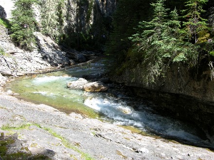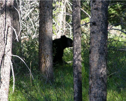We again drove down the Bow Valley Parkway, this time to take the trail at Johnston Canyon. On the way we hit a traffic jam, better known as a "wildlife jam" and it was a black bear:
