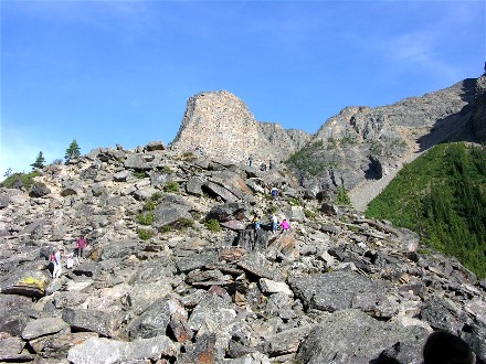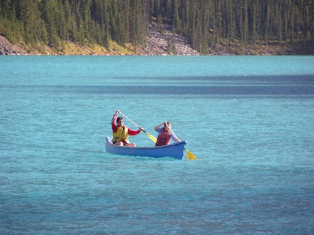 We made it to Moraine Lake in plenty of time for our dinner reservation so we took the trail and took pictures:
