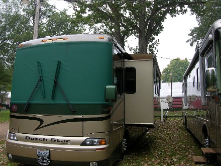 Ed had an appointment for some work at Spartan in Charlotte, so they took off before we did. Our package with our new mast part had not come in. The weather was supposed to get wet and it did, very wet. When the part came into the office they delivered it right to our site, now that is service. Wild Cherry Resort is a very nice place.