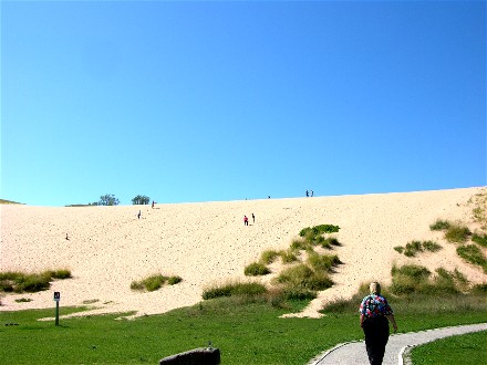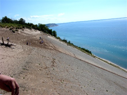 One day we went to Sleepy Bear Dunes National Lakeshore. The crazies would go down the dunes to Lake Michigan and crawl back up the 400 feet of sand. Here are pictures: