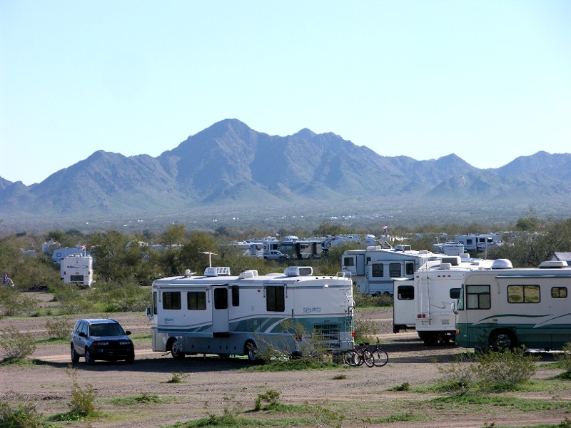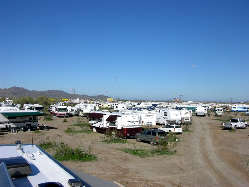 Evita liked Quartzsite, there were so many smells and friendly people who let her into their RVs. The Jenkins are here, who we last saw in Death Valley.