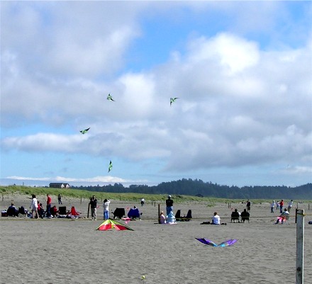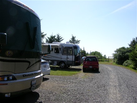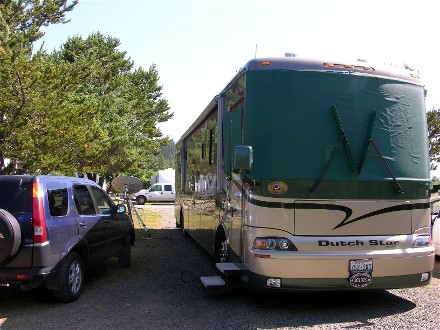 June 23rd we drove 111 miles to Seaview, WA, which is just south of Long Beach, WA. The road was narrow part of the way and we took a rock chip while going about 45mph that cracked. We had come to the Thousand Trails/NACO Long Beach Preserve (Thousand Trails calls campgrounds "preserves"). Here is our campsite, the second picture shows the way to the beach: