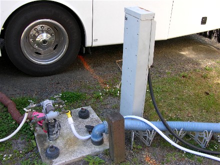 Hookups were a bit different here, luckily we carry enough sewer hose: