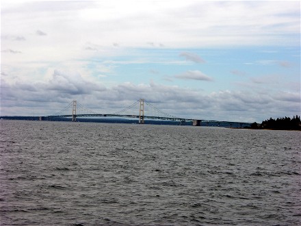 The storms cleared the air, here is what the Mackinaw Straits Bridge looked like from the ferry: