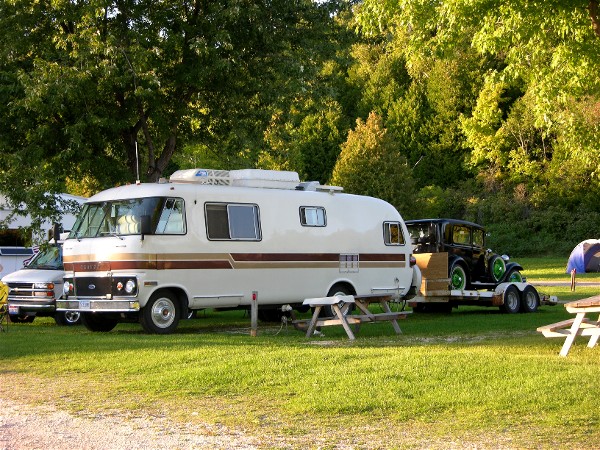 We watched an old Travco motorhome come in with a classic car on a trailer: