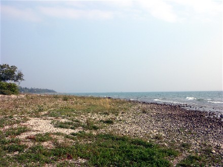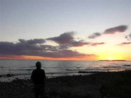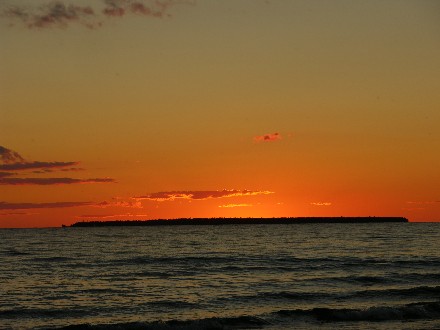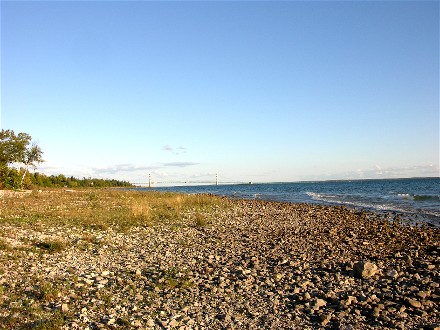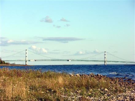 The campground had a beach on Lake Michigan and we went to check it out, it was very hazey and we could barely see the outline of the Mackinaw Straits Bridge:
