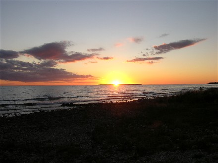 We drove down to St. Ignace, MI to stay a couple days, our days drive totaled 66 miles but we moved between two countries. Here is our campsite facing Lake Michigan: