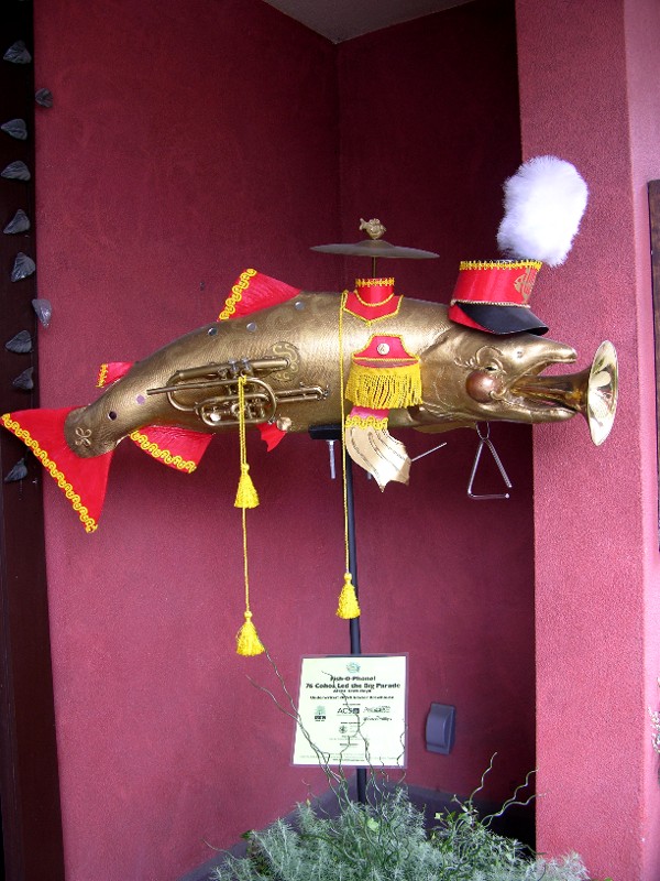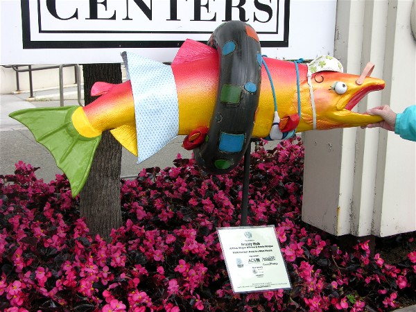 They had sculptures of salmon all over downtown, 76 Coho in all. Here are two of them. The first is "Fraidy Fish":
