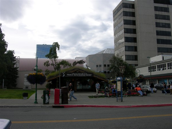 We also walked around downtown Anchorage. This is the famous Visitor Information Center with the sod roof: