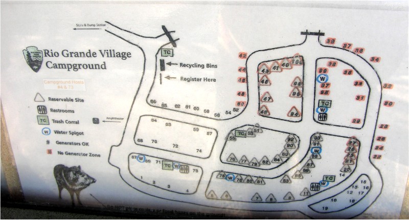 We went to the no hookup area of Rio Grande Village Campground, $10/night, and stayed four nights. Here is our campsite: