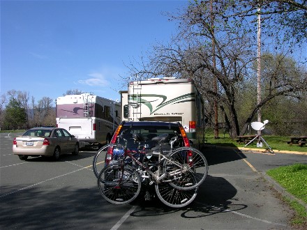 Here we are on the 9th with the bikes on the back of the motorhome.