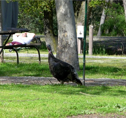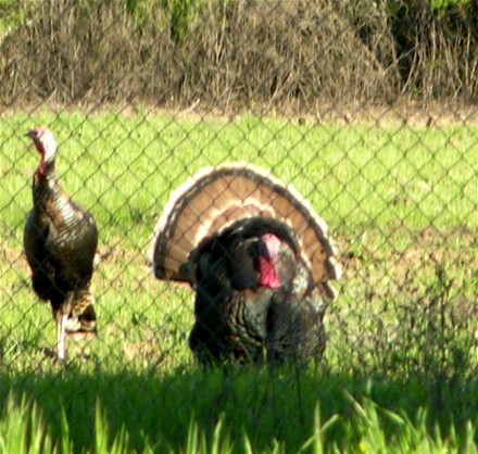 There were wild turkeys both inside the campground and across a cyclone fence: