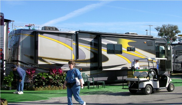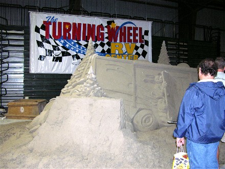 The main RVs we toured were the 2006 Newmar motorhomes. The All-Star was interesting for the two story bedroom, but it is for families and not a couple. We liked our 2004 Dutch Star more than the 2006 Dutch Stars. We didn't take many pictures, but Kingsley Coach had some interesting models. Kingsley is known for making motorhomes using a semi-truck front-end: