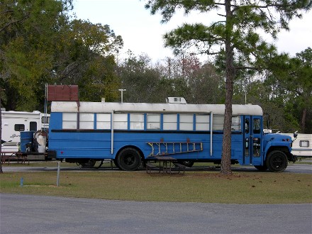 When we came into the campground originally we saw an old converted school bus camped. Later we saw it dry camped by the entrance for about a week and then it came back in which is when we got a picture of it: