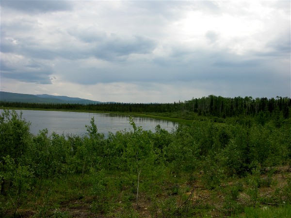 June 14th we filled up with diesel and headed north on the Klondike Highway on our way to Dawson City, where the Yukon Gold Rush was. Soon there was little traffic and the scenery was good. We started collecting wildflower pictures and will have a collection linked at the end of this web page. We learned that at least at this time of year you do not see much wildlife other than Ravens on this highway.