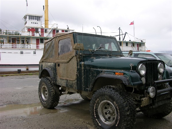 Even though it was wet things were happening in Dawson City. This jeep shows how wet it was: