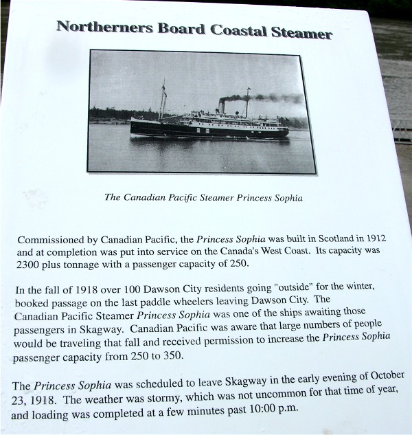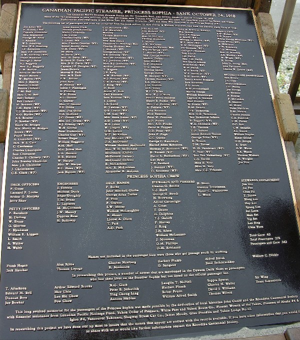 Click on the next picture if you want to see a much larger version where you can read the names. The larger version is included if anyone reading this has relatives that died when the Princess Sophia sank or is doing research: