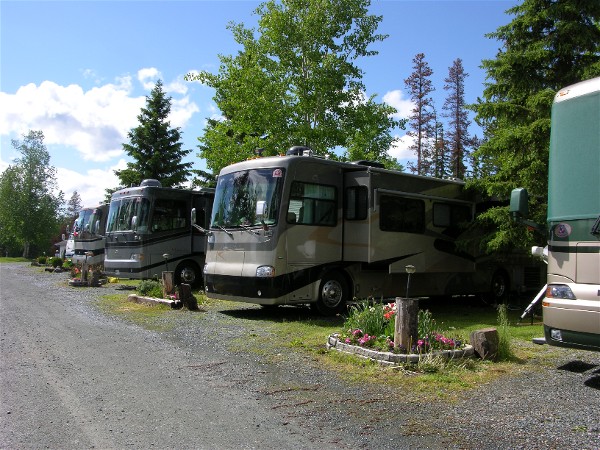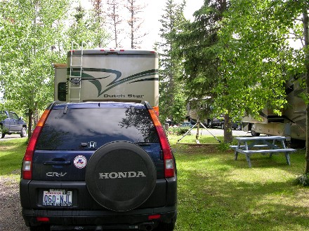 We settled into Northern Lights RV Park in Dawson Creek, BC for two nights after driving 257 miles. Here is our campsite: