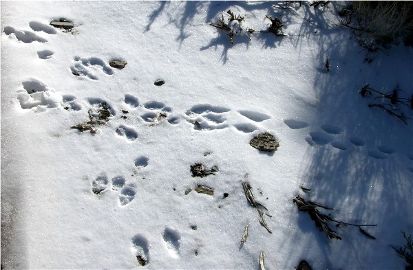 Rabbit tracks and we think we saw some coyote and deer tracks: