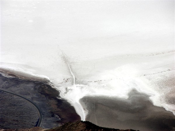 A telephoto shot of where the Badwater Basin access comes out, but no people were visible this afternoon: