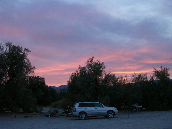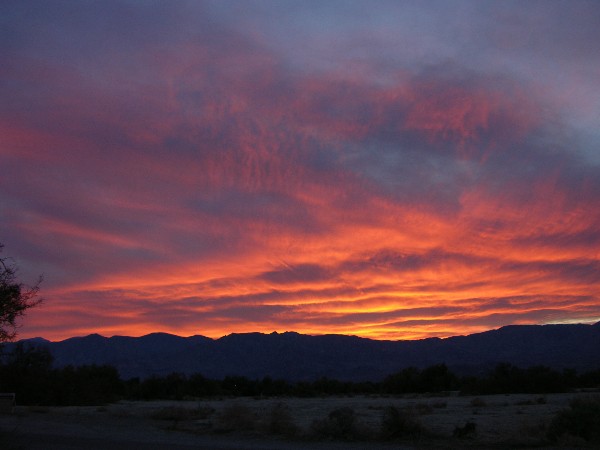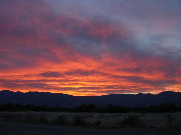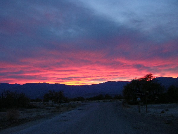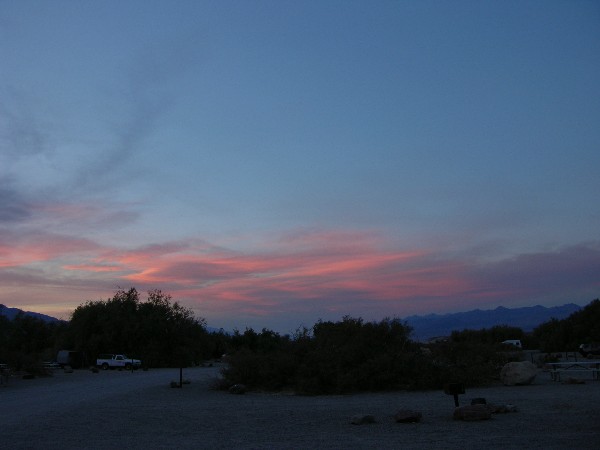 No problem with snow on our journey. There were clear skies to the west and a short and scenic 65 mile trip to Furnace Creek Campground in Death Valley National Park: