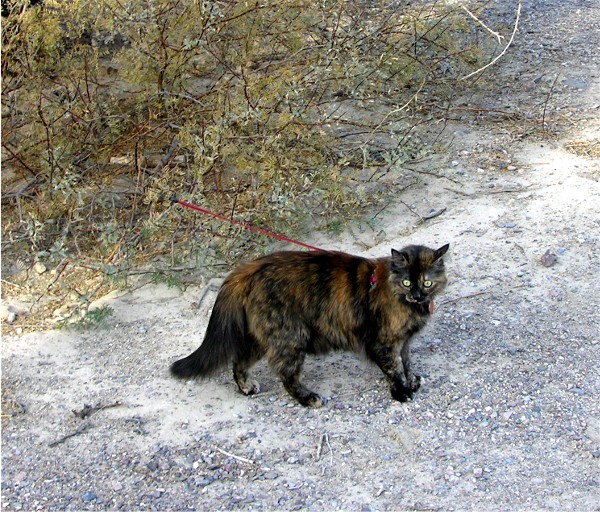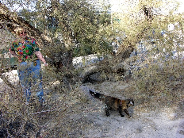 Evita loves Furnace Creek Campground. She can climb the mesquite trees and there are interesting smells:
