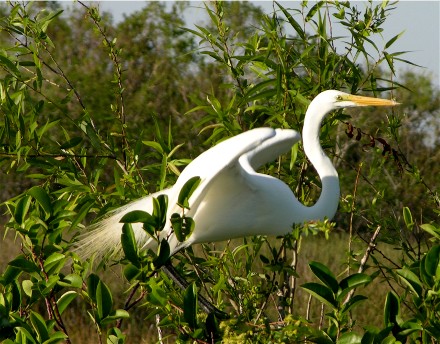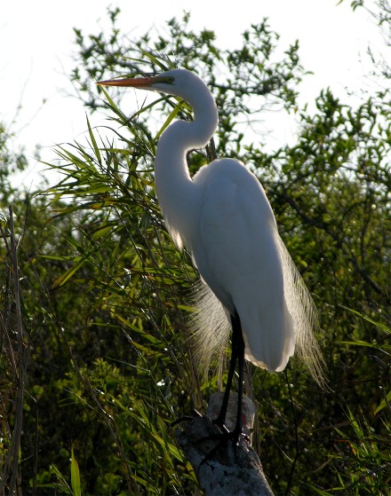 We saw many herons and egrets on the trail. Many were in breeding plumage.