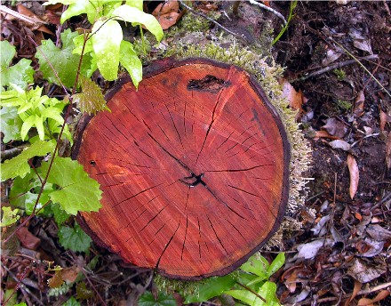 Notice there are no rings, or they are very faint. Trees don't stop growing here so they do not have growth rings like further north. The soil does not get thick either, since as leaves and debris fall all year they get broken down and used all year and don't build up like up north.