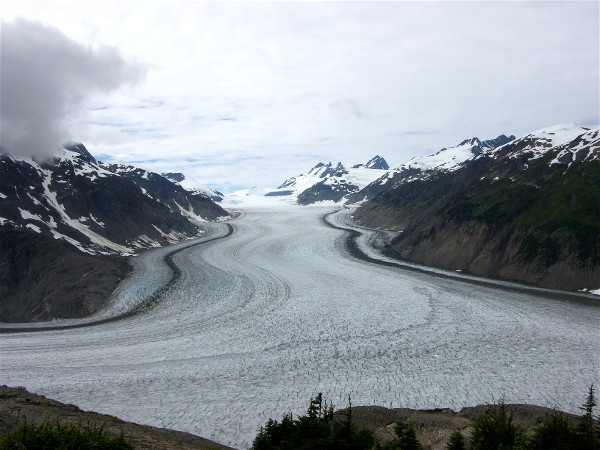 At the top glacier viewpoint looking west at Salmon Glacier: