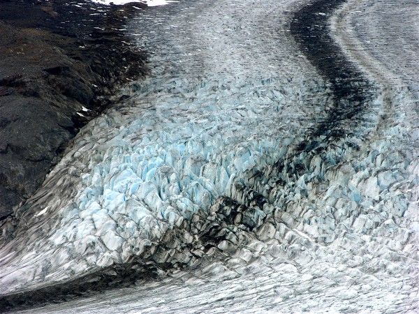 Salmon Glacier is a drive over glacier, the road goes above it so it feels like you are looking out of an airplane: