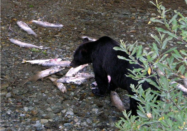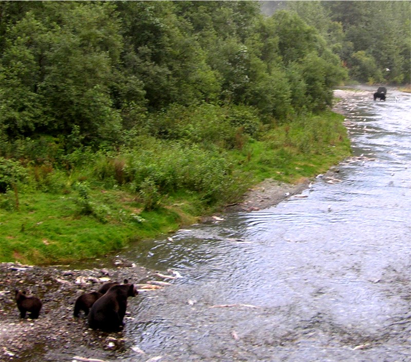 Momma and the cubs came out nervously once the male was down the creek. Male grizzlies kill and eat cubs: