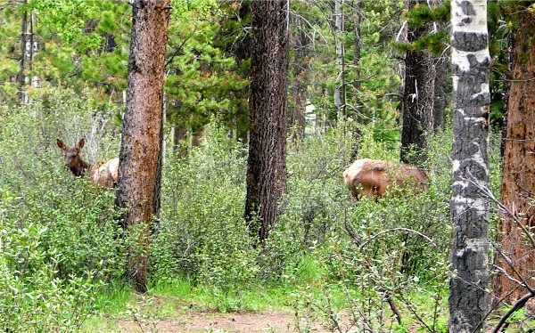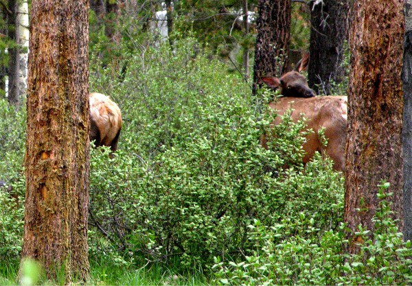 While checking in they told us to stay far away from the elk since it was calving season. In the morning we saw elk in the campground and Bill took pictures, but was far away. Here are the photos anyway: