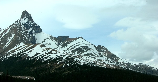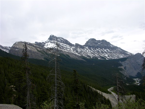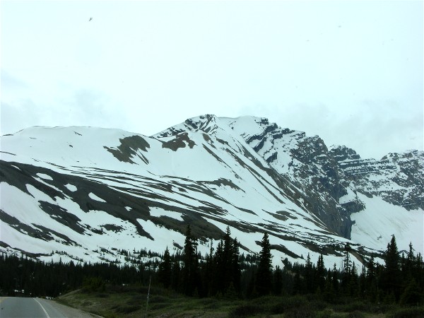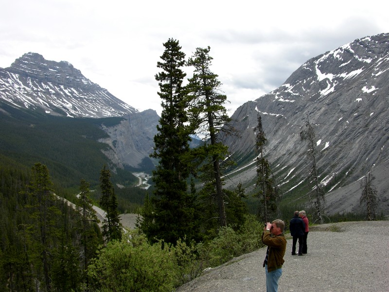 The weather was not as nice this day as it was on the 2nd when we drove the car partway up the Icefields Parkway, but it wasn't raining or windy. We found ourselves following a group of five motorhomes that looked like they were from the Tracks to Adventures caravan to Alaska. At the first scenic stop they all pulled off and we didn't see them again until the end of the day.