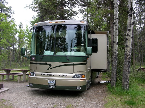 After 145 miles we arrived at Whistlers Campground in Jasper National Park, a couple kilometers south of the town of Jasper. We were in the middle of the group of Tracks to Adventure caravaners and it turned out we knew some of them from the Nutty Buddy's Rally in November 2005 in Florida.