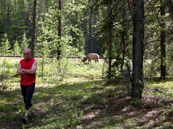 Then we went down the Bow Valley Parkway to Banff to have lunch and see the sights of Banff. On the way we saw some bull elk, but they were spooked by too many cars, and some more bighorn sheep, probably the same ones from the 1st. This time we tried Earls Restaurant, a 3-star.