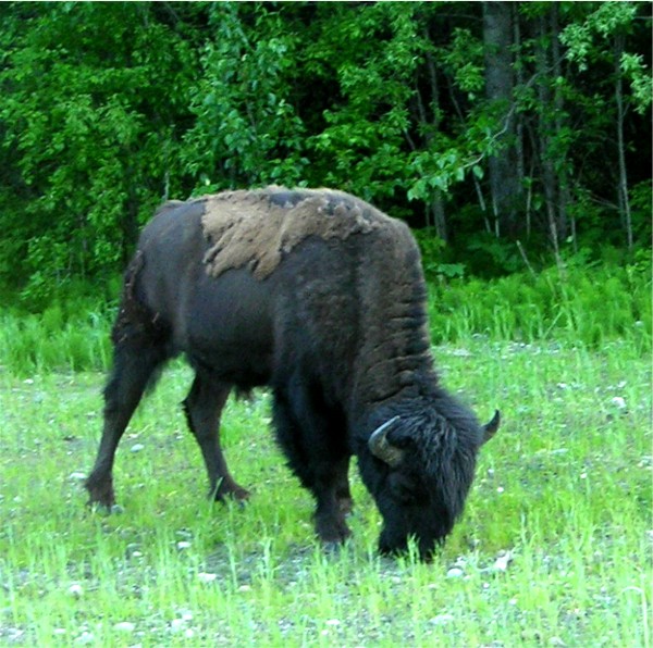 Just before coming to Liard Hotsprings we saw this wood buffalo and he was huge. Wood buffalo are larger than the ones further south: