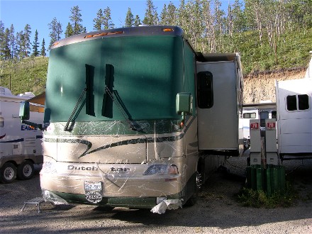 Since we knew people staying at Pioneer RV Park in Whitehorse, that is where we went even though we had recommendations against the place. After 193 miles of driving here is our campsite: