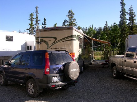 After 204 miles we were at Rancheria RV Park in Rancheria, YT. Here is our campsite: