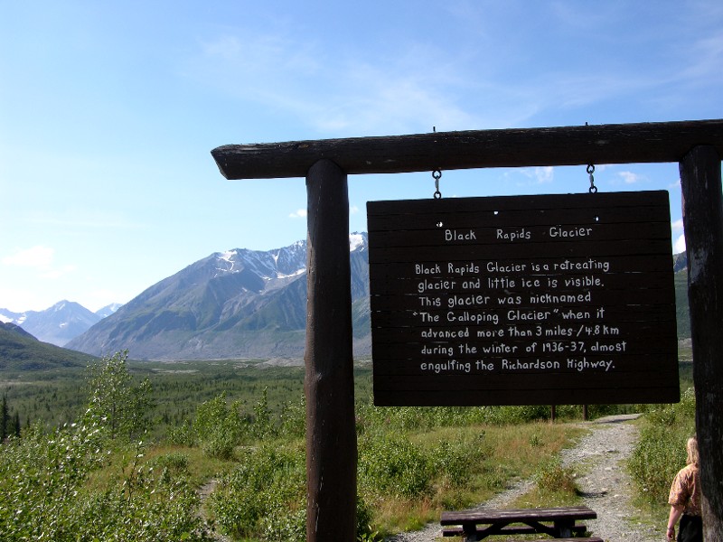 The red arrow shows the Black Rapids Glacier from near the bison sign: