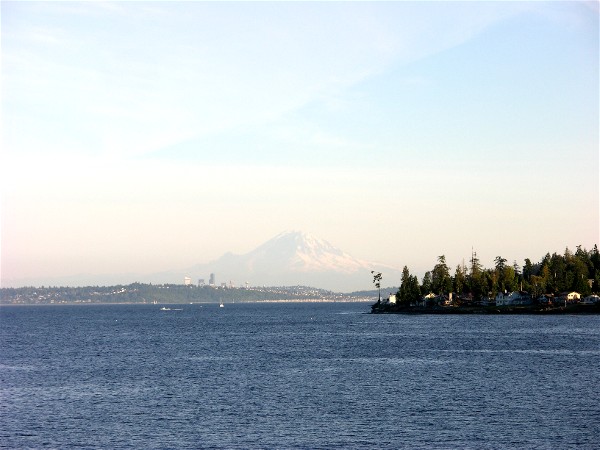 Another shot of Mount Rainier with a bit of the Seattle skyline in the distance: