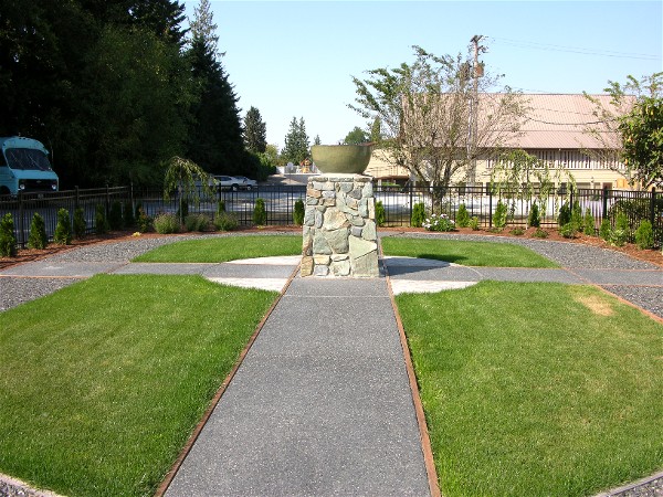 On September 2nd we drove down to Burlington and had lunch with our friend Dick at another Bob's Burgers and Brew, also good. We then stopped by Camping World and went with Dick to his church where Ann will be honored here in this garden.