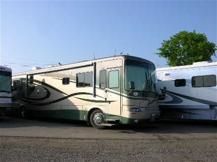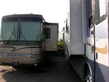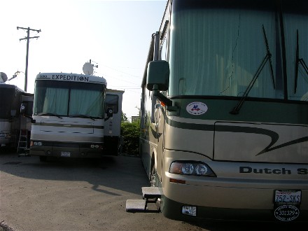 Friday morning, the 28th, Bill went off to his first Escapees Advisory Council meeting. The plan was to move the motorhome to a hookup site at lunch. Another Advisory Council spouse, Jan, had Diane move the CRV into a full hookup site in the morning and when Bill came to help Diane move the motorhome Diane had already moved it forward and had it all ready. All Bill had to do was find the crowbar and pry the blocks out of the hard ground. The full hookup site was tight, but we had 30AMP power and were ready for the night. Jan's motorhome was on our driver's side.