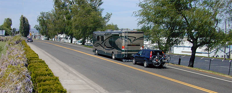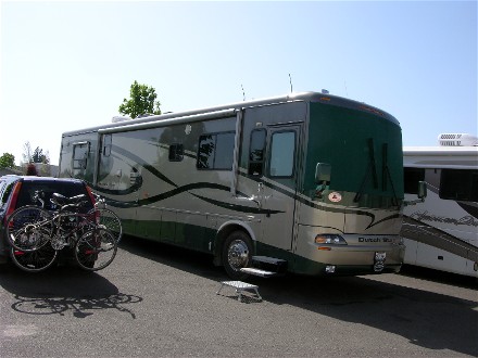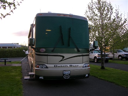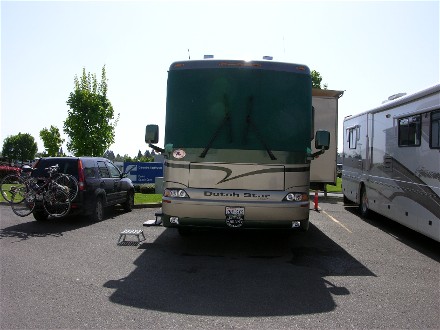 We were the first ones taken for work on May 2nd and they were done a little after 11AM. Our annual chassis maintenance was complete and our brake problem was an adjustment issue, easily fixed. We then drove 111 miles to Columbia River RV Park in Portland, OR, where we also stayed in April 2005.