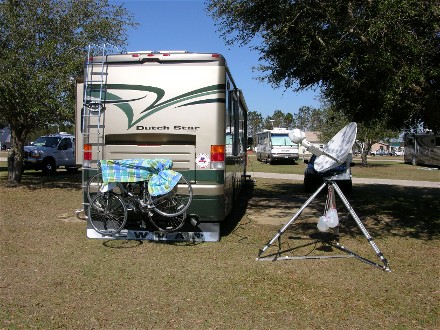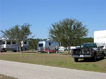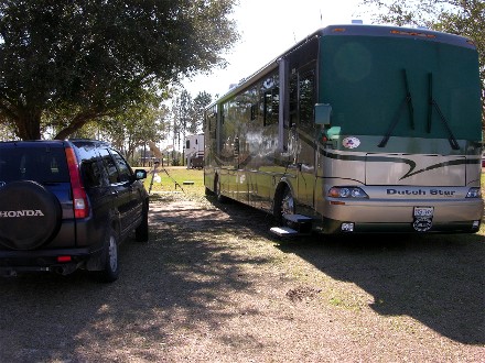We drove 247 miles on the 6th from Tallahassee, FL to Rainbow Plantation SKP park in Summerdale, AL. We had stayed here in January 2004 also. Here is our campsite: